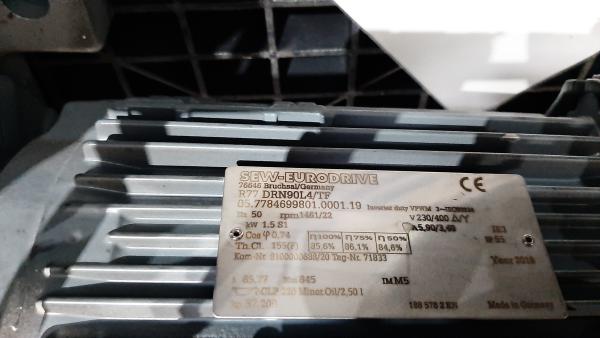 Speed rpm 1461 / 22. Total gear ratio i 65.77. Max torque Nm 820. Output torque Nm 645. Service factor SEW FB 1.25. Mounting position IM M5.
