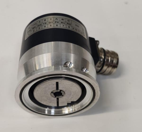 GHA5 - Opt. incrémental 58mm - Corps Alu - Arbre borgne - Arbre 6mm - 11-30 Vdc - Push-Pull - AA / BB / 00 / - 0 gated A&B - B avant A - 240 ppr - 12 broches Connecteur M23 - Côté