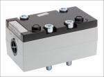 Pneumatic control 5/2 switching principle with spring return. Connection on base, nominal flow rate qn 4800 l/min. Compressed air connection outlet. Base plate iso 5599-1. Min. service pressure -0.95 bar, max. 16 bar.