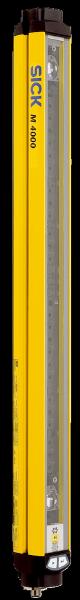 Mutifunction safety light curtain. Part of the system: transmitter. Range: 0.5 m to 70 m, configurable. Number of beams: 3. Beam spacing: 400 mm. Connection mode: Male M12 connector, 8 pins. Integrated laser alignment tool: yes. Series: M4000 Standard.