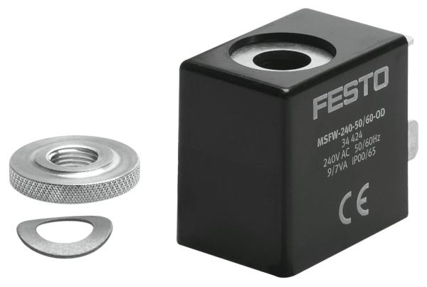 Electrical connection 3-pin - Plug pins with connection pattern to Festo standard for MSSD-F Type of mounting Via knurled nut Characteristic coil data 110 V AC: 50/60 Hz, pick-up power 9.0 VA, holding power 7.0 VA Degree of protection IP65