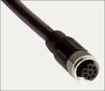 Connection cable, M12 x 1. Connector M12, female, straight, 8 pins, A-coded. Free cable end. Cable 30 m, 8 wires (8 x 0.25 mm²), PUR, halogen-free. Unshielded. Cable carrier compatible. Max. voltage 30 V. Electrical load 2 A. Protection class IP67. Temperature -40 C to +80 C (fixed cable). Temperature -5 C to +80 C (moving cable). Application area: oil/lubricant domain.