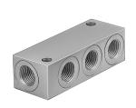 Festo distribution block. This pneumatic distribution block features 1 G1/4 thread for input and 3 outputs. It is designed for industrial maintenance and spare parts.