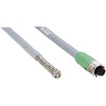 Connection cable, M12 x 1. Connector / connection cable. Type: Connection cable, M12 x 1. Signal type: Power, series, CAN, digital I/O. Connection A: M12 connector, female, straight, 17 poles, A-coded. Connection B: Free cable end. Cable: 10 m, 17 wires, PE-X, stripped. Shielding: Shielded. Cable carrier compatible: Yes (1 million), max. 10 m/s. Service temperature: In motion: -25 °C ... +80 °C. In fixed position: -40 °C ... +80 °C. Special version: 2 A adapted, color-coded free cable ends modified.
