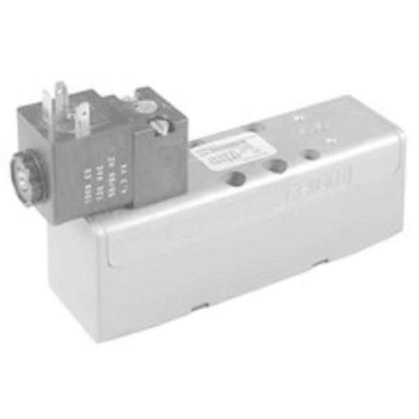 This 5/2 way valve from the ceram™ series, size 1 and compliant with iso 1 standard, features a monostable electrical control with an internal pilot. It offers a 5/2 switching principle with spring return. The manual override can be latching or non-latching. The nominal flow rate is 1100 l/min.