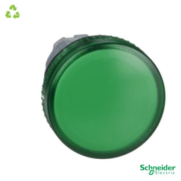 Pilot light head, Harmony XB4, metal, green, 22mm, plain lens for BA9s bulb