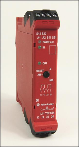 Relé de seguridad de entrada única Guardmaster (SI), 1 entrada universal de doble canal, 1 salida auxiliar inmediata de estado sólido N.C.