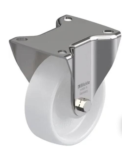 Rueda fija de acero inoxidable, con platina atornillable, rueda de poliamida