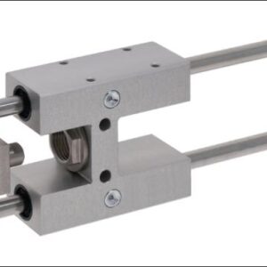 Unidad de guía con un diámetro de pistón de 100 mm y una carrera de 600 mm. Este rodamiento es de tipo rodamiento de bolas lineal, diseñado para cilindros estándar ISO 15552. La temperatura ambiente mínima es de -20 °C y la máxima de 80 °C.