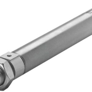 «Cilindro estándar en empuje – de simple efecto, diámetro 20 mm, carrera 50 mm, anillos/placas de amortiguación elásticos en ambos lados.»