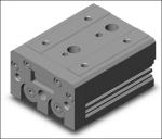 Vérin guidé de type table coulissante, doté d'une conception à double tige pour une stabilité et une précision accrues. Ce composant pneumatique double effet possède un alésage de 20 mm et est équipé pour le montage de détecteurs automatiques. Il assure un mouvement linéaire fiable et précis pour diverses applications.