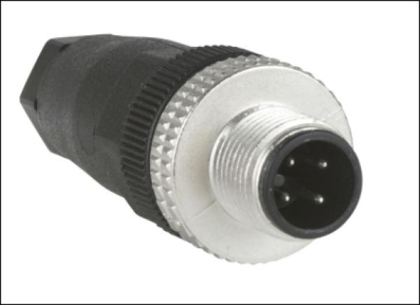 Connecteur mâle M12, 4 broches, droit, presse-étoupe Pg 7.