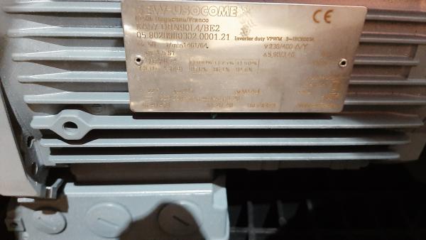 Moteur triphasé 1.5kw. Vitesse 1461 / 64 tr/min. Rapport total 22,71. Couple maximal 600 Nm. Couple de sortie 225 Nm. Facteur de service 2,70. Position de montage M1AB.