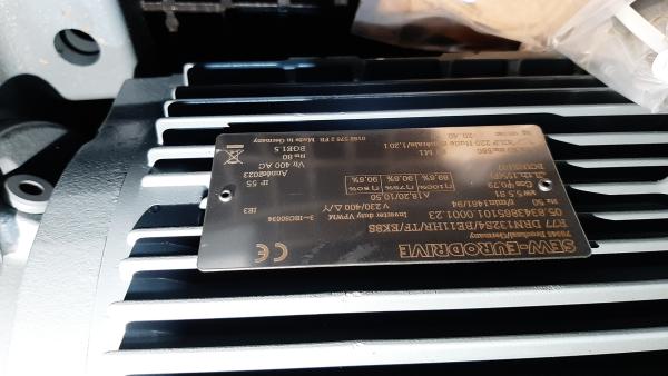 Vitesse 1461 / 94 tr/min. Rapport de réduction total 15,60. Couple maximal 740 Nm. Couple de sortie 560 Nm. Facteur d'utilisation SEW FB 1,30. Position de montage IM M1.