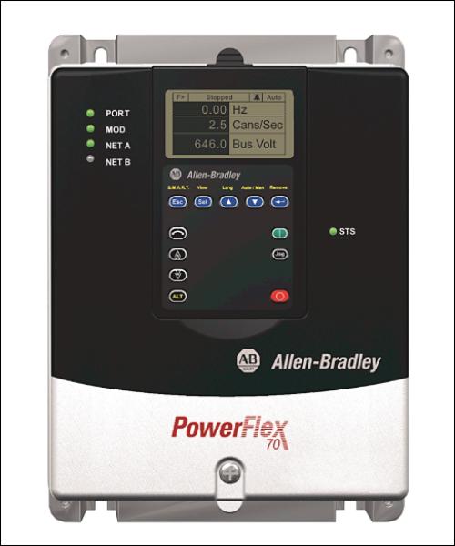 Variateur de fréquence PowerFlex70 AC, 400 V CA, 3 PH, 2,1 A, 0,75 kW en service normal, 0,55 kW en service intensif, montage en panneau - IP20 - cadre B - SER A.