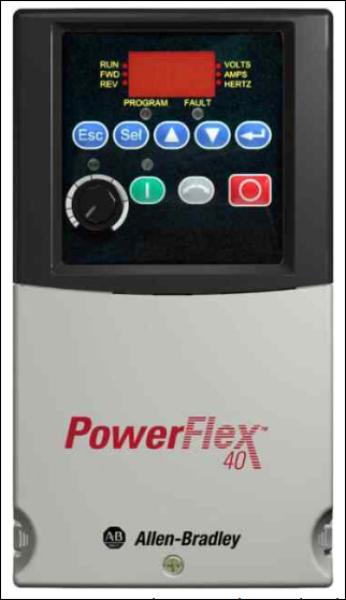 Le variateur de fréquence PowerFlex 40 AC, 380...480V AC, 3 phases, 1.4 ampères, 0.37 kW, 0.5 CV, taille de châssis B, montage en panneau - IP20, NEMA/UL type ouvert, afficheur à LED, clavier numérique, sans filtre conforme CE, RS485, SER A.