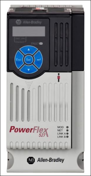 Variateur de fréquence PowerFlex 527 AC, avec ports EtherNet/IP intégrés et sécurité intégrée, 380-480V AC, 3 phases, 10,5 A, 5 cv, 4 kW usage normal; 5 cv, 4 kW usage intensif, châssis B, type ouvert IP20 NEMA, filtre, SER B.