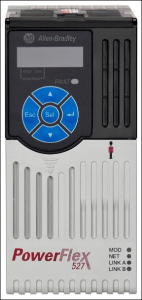 Variateur AC PowerFlex 527, avec EtherNet/IP double port intégré et sécurité intégrée, 380...480V AC, 3 phases, 6 ampères, 3 ch, 2.2 kW service normal; 3 ch, 2.2 kW service intensif, châssis A, type ouvert/NEMA IP20, filtre.