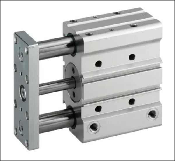 Vérins de guidage : Ø piston 12 mm, Ø tige de piston 6 mm, course 125 mm. Principe de fonctionnement à double effet. Type de palier : palier lisse.