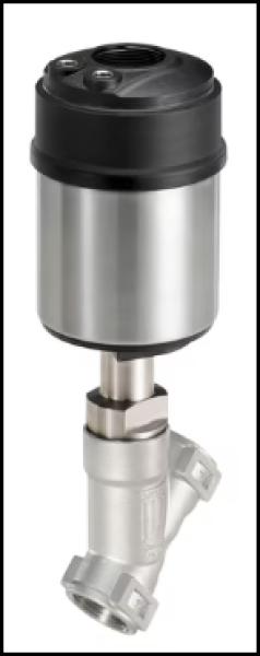 Vanne de régulation de process | Vanne à siège angulaire | 0,00 bar – 12,00 bar | -10,00 °C – 130,00 °C – B – normalement ouverte (NO) | PTFE (Polytétrafluoroéthylène) | Acier inoxydable