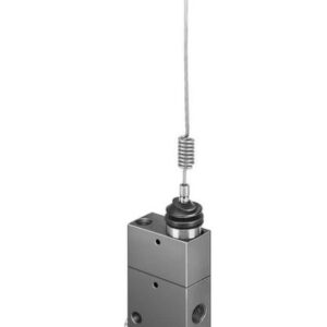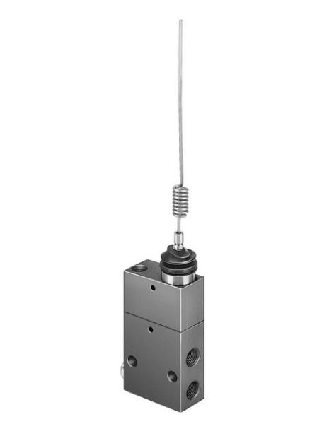 « Fonction de distributeur 3/2 monostable fermé, Mode d’actionnement mécanique, Débit nominal normal 146 l/min, Raccord de travail pneumatique G1/8, Pression de service 0.35 MPa … 0.8 MPa, »