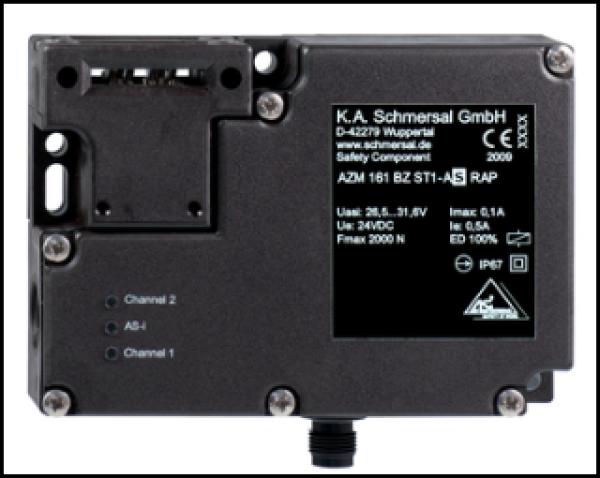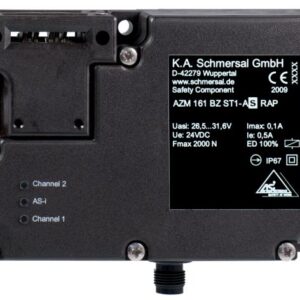 Solénoïde d’alimentation 24 VDC (Aux) Actionneur surveillé Déverrouillage manuel Solénoïde de verrouillage Boîtier en thermoplastique Force de maintien élevée 2000 130 mm x 90 mm x 30 mm Verrouillage avec protection contre un verrouillage incorrect. Double isolation Longue durée de vie AS-Interface intégré